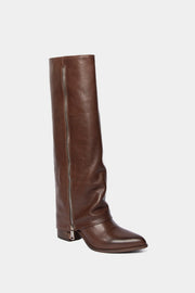 stivale pelle marrone con gambale a tubo e cerniera esterna
