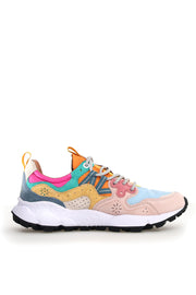 Sneaker in tessuto tecnico con inserti multicolor. Occhielli rinforzati e lacci trek. Soletta interna in sughero naturale antibatterico, fondo in gomma ultra leggera con battistrada dentellato.