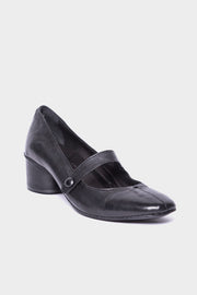 Scarpa Bebè in pelle nera, cinturino con bottone ed elastico