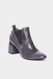 Scarpa accollata in vernice e pelle grigi, elastici laterali