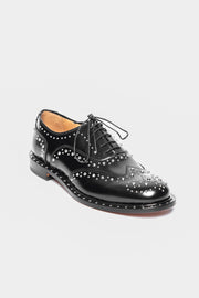 Stringate modello SIENA MILLE 885 in pelle e borchie. Chiusura frontale con lacci. Suola esterna in cuoio logata. Tomaia interna in pelle