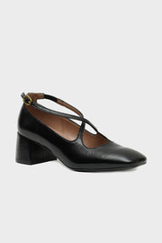 Decollete con cinturini incrociati, colore nero, tacco 5 cm