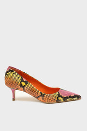 Decollete Alexandra in pelle pitonata rosa e giallo m825