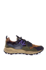 Sneaker in tessuto tecnico con inserti multicolor. Occhielli rinforzati e lacci trek. Soletta interna in sughero naturale antibatterico, fondo in gomma ultra leggera con battistrada dentellato.