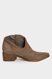 Accollato in camoscio color grigio con scollo laterale esterno e zip nella parte interna.
