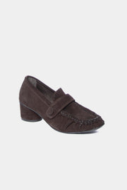 Tomaia con vaschetta impunturata e fascia con bottoncino foderato