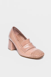 Mocassino in vernice con punta intrecciata e fibbia frontale