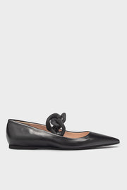 Ballerina a punta stretta con catena oversize tono su tono opaca sul collo.