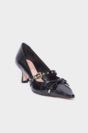 Decollete in pelle nera con cinturino regolabile sul collo del piede