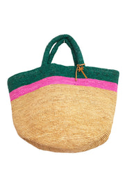 Borsa a mano Manebi da donna in raffia verde e fuxia summer