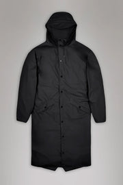 Questa giacca antipioggia è una versione più lunga della classica giacca antipioggia di Rains. È dotata di abbottonatura con automatici, cappuccio con visiera incorporata e due tasche laterali con automatici. Le maniche sono regolabili con bottoni automatici, per una vestibilità ampia o aderente.